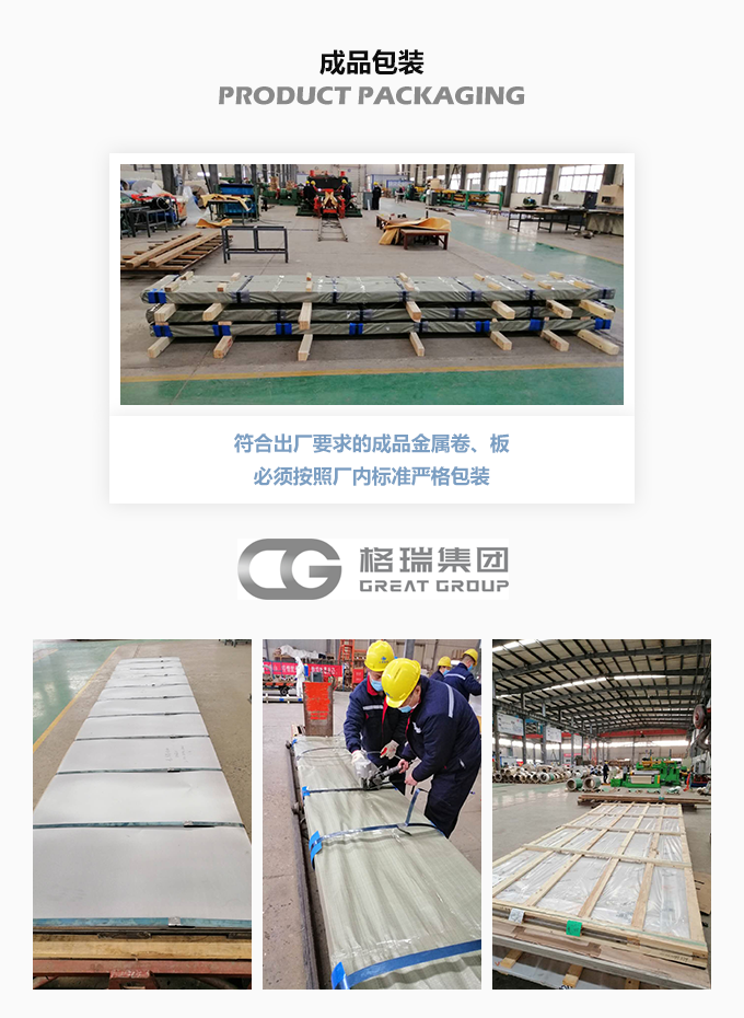 拿成品包裝來說,在大多數人眼里,金屬卷、板都是冷冰冰的“鐵”疙瘩,不怕摔,不怕壓,還需要什么包裝嗎?但在格瑞人眼里,符合出廠要求的成品金屬卷、板必須按照廠內標準嚴格包裝后才能發運。針對不同規格、尺寸的金屬卷、板,格瑞制定了一整套的包裝標準,例如板材包裝分為簡易包裝、木架包裝、出口鐵箱包裝等八種包裝方式,卷材包裝分為小卷快遞包裝、精包裝、全木箱包裝等十余種包裝方式。
